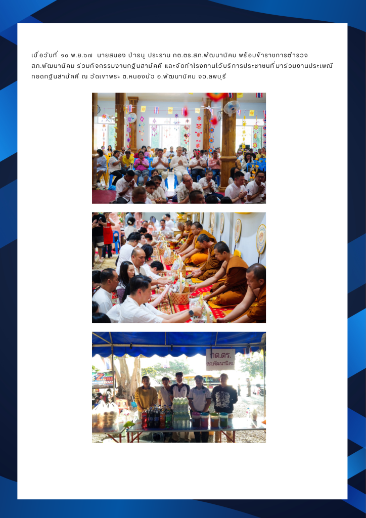 ผลการดำเนินงานของ กต.ตร.สภ.พัฒนานิคม ประจำเดือน พฤศจิกายน 2567 19 พฤศจิกายน 2567 โดย pattananikom.lopburi / กิจกรรม กต.ตร.สภ.พัฒนานิคม