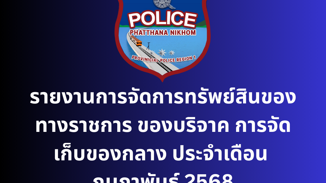 รายงานการจัดการทรัพย์สินของทางราชการ ของบริจาค การจัดเก็บของกลาง ประจำเดือน กุมภาพันธ์ 2568