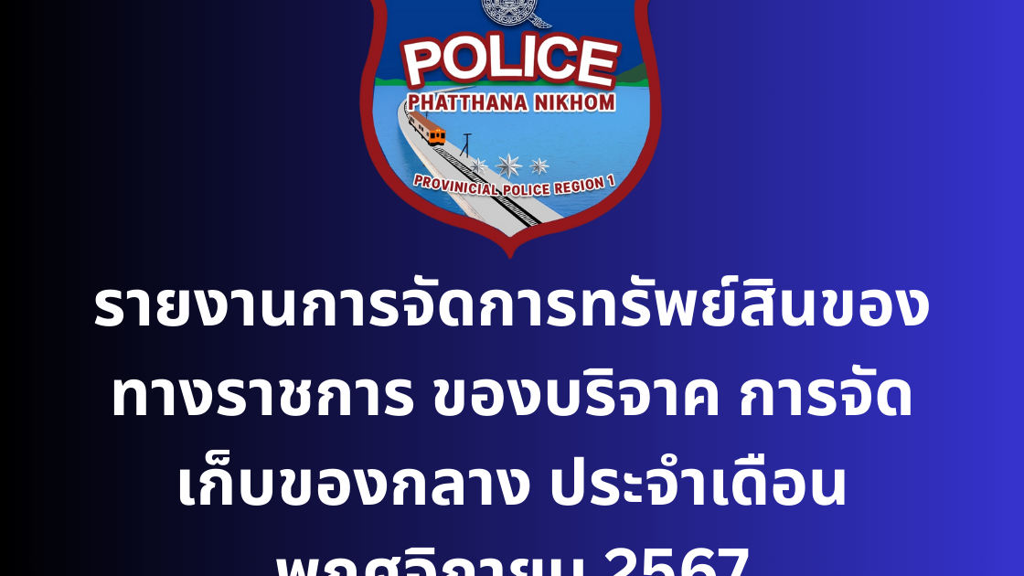 รายงานการจัดการทรัพย์สินของทางราชการ ของบริจาค การจัดเก็บของกลาง ประจำเดือน พฤศจิกายน 2567