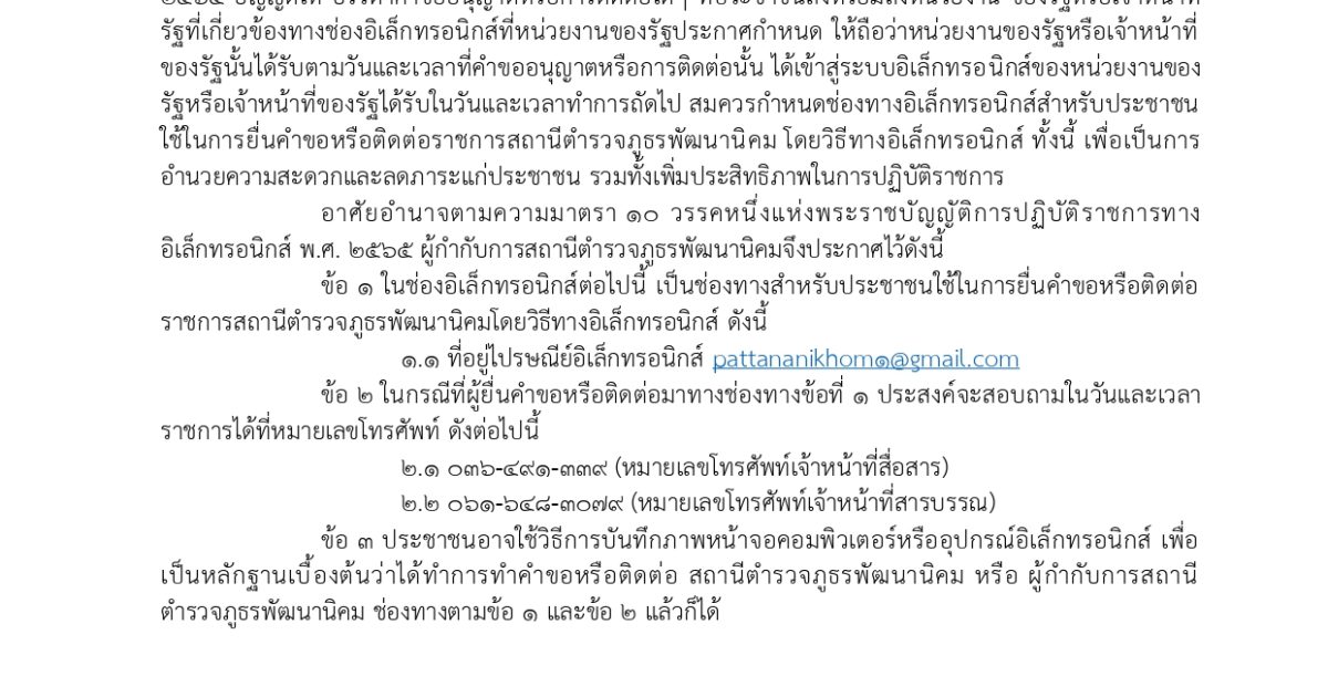ประกาศสถานีตำรวจภูธรพัฒนานิคม เรื่อง ช่องทางอิเล็กทรอนิกส์สำหรับติดต่อราชการ สถานีตำรวจภูธรพัฒนานิคม