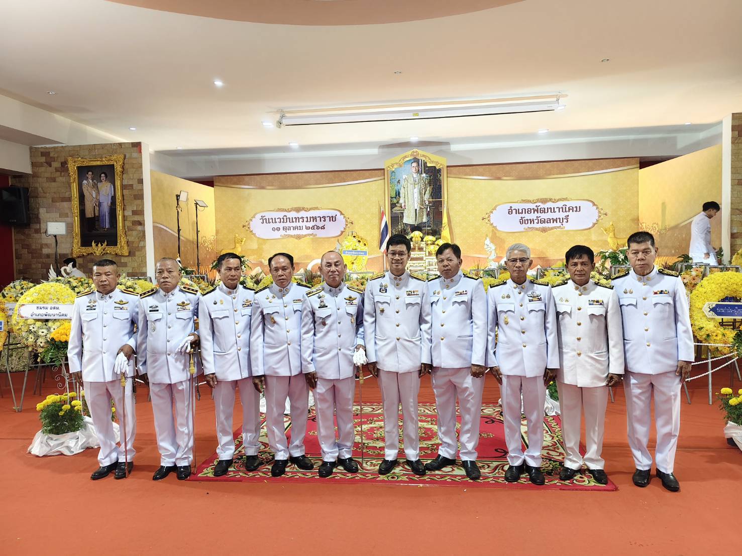 พ.ต.ท.ฉัตรชัย กอบุตร รอง ผกก.สส.สภ.พัฒนานิคม และ ข้าราชการตำรวจประจำ สภ.พัฒนานิคม ร่วมพิธีเจริญพระพุทธมนต์ ทำบุญตักบาตรถวายพระราชกุศล และพิธีวางพวงมาลาถวายพระราชกุศล วันนวมินทรมหาราช 13 ตุลาคม 2568 เพื่อเป็นการน้อมรำลึกถึงพระมหากรุณาธิคุณในพระบาทสมเด็จพระบรมชนกาธิเบศร มหาภูมิพลอดุลยเดชมหาราช บรมนาถบพิตร ที่ทรงมีต่อปวงชนชาวไทยเป็นล้นพ้นอย่างหาที่สุดมิได้ ณ หอประชุมที่ว่าการอำเภอพัฒนานิคม ร่วมกับส่วนราชการในเขตพื้นที่อำเภอพัฒนานิคม