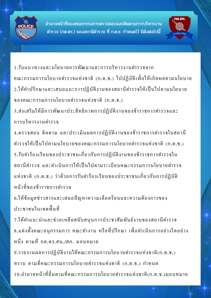 อำนาจหน้าที่ของคณะกรรมการตรวจสอบและติดตามการบริหารงานตำรวจ (กต.ตร.) ของสถานีตำรวจ