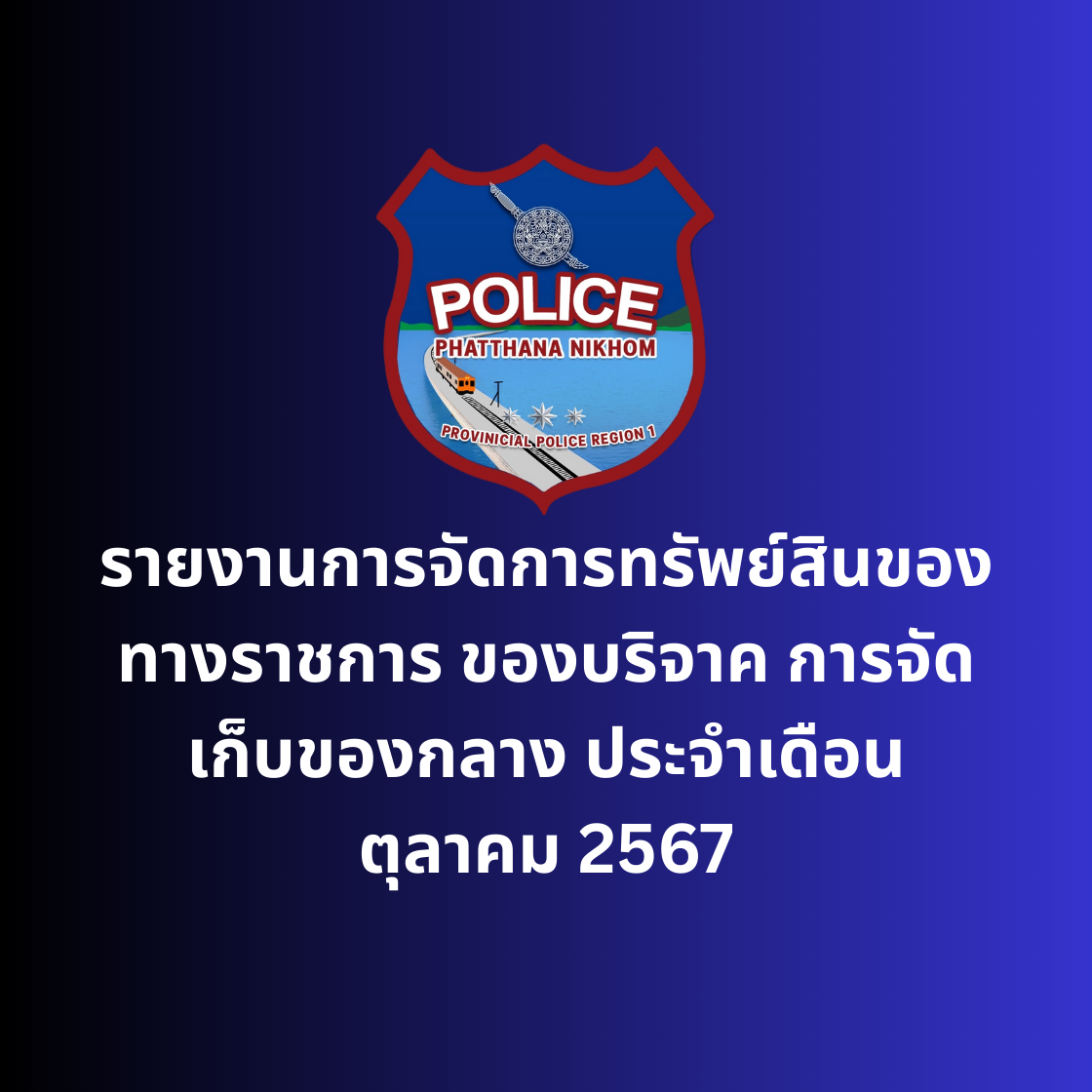 รายงานผลการปฏิบัติเกี่ยวกับการจัดการทรัพย์สินของราชการ ของบริจาค การจัดเก็บของกลาง